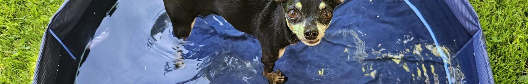 Die beiden Offizierinnen der Hundesternenflotte genießen die Sonne, als auch den Schatten und manchmal sogar das Hundeplanschbecken.
